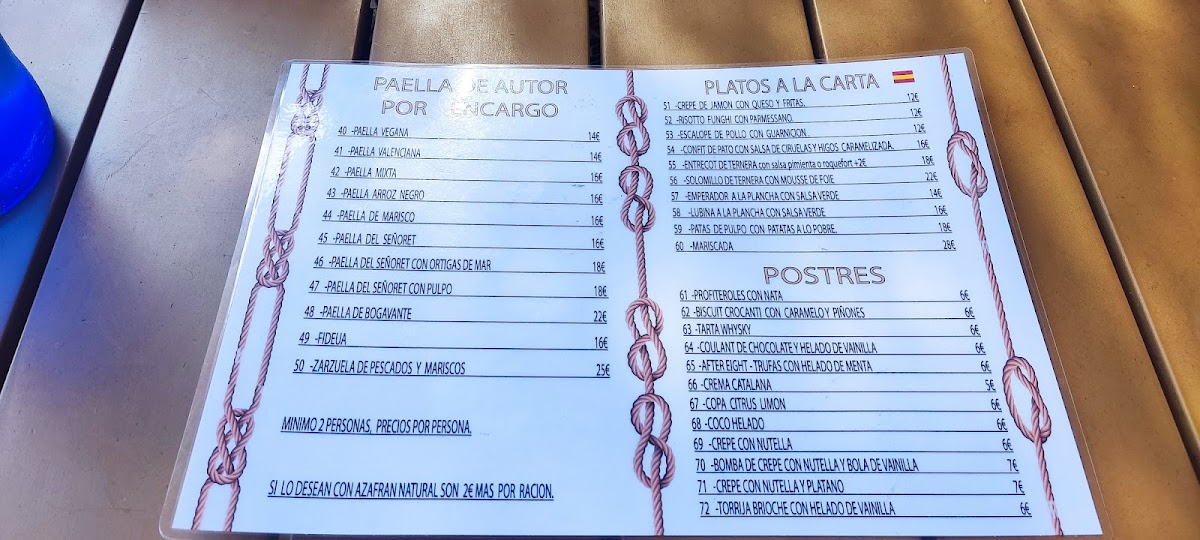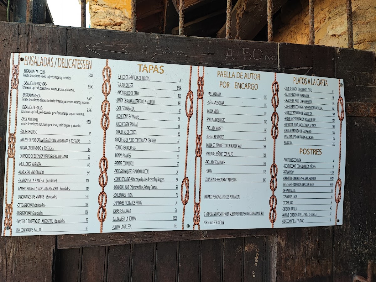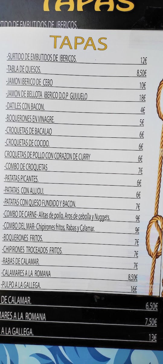 RESTAURANTE TUNEL TERRAZA DEL MAR Menu